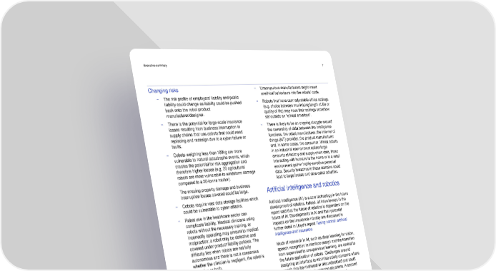 Executive summary 7 Changing risks − Unscrupulous manufacturers might insert − The risk profile of employers’ liability and public unethical behaviours into the robots’ code. liability could change as liability could be pushed − Robots that have user-adjustable ethics settings back onto the robot product (e.g. choice between maximising length of life or manufacturer/designer. quality of life) may have their settings somehow − There is the potential for large-scale insurance set outside an “ethical envelope”. losses resulting from business interruption in − There is likely to be an ongoing struggle around supply chains that use cobots that could need the ownership of data between the intelligence replacing and redesign due to a cyber failure or functions, the cobot manufacturer, the internet of faults. things (IoT) provider, the product manufacturer − Cobots weighing less than 100kg are more and, in some cases, the consumer. Whilst cobots vulnerable to natural catastrophe events, which in an industrial environment collect large creates the potential for risk aggregation and amounts of factory and supply chain data, those therefore higher losses (e.g. 20 agricultural interacting with humans in the home or in a retail robots are more vulnerable to windstorm damage environment gather highly-sensitive personal compared to a 20-tonne tractor). data. Security breaches in these domains could lead to large losses and slow cobot adoption. The ensuing property damage and business interruption losses covered could be large. Artificial intelligence and robotics − Cobots require vast data storage facilities which could be vulnerable to cyber-attacks. Artificial Intelligence (AI) is a core technology in the future − Robot use in the healthcare sector can development of robotics. Indeed, all interviewees in the complicate liability. Medical clinicians using report said that the future of robotics is dependent on the robots without the necessary training, or future of AI. Developments in AI and their potential incorrectly operating may amount to medical impacts on the insurance industry are discussed in malpractice; a robot may be defective and further detail in Lloyd’s report Taking control: artificial covered under product liability policies. The intelligence and insurance. difficulty lies when robots are not fully Much of research in AI, such as deep learning for vision, autonomous and there is not a consensus speech recognition in interface design and the transition whether the clinician is negligent, the robot is from supervised to unsupervised learning, are central to defective or both. the future application of cobots. Challenges around New risks designing an interface to minimise safety concerns where speech may be misheard or misunderstood and could − Faulty cobots have the potential to cause lead to potentially life-threatening situations. A second damage to property (e.g. a moving robot might problem is making the interface engaging and entertaining so that people will continue to interact with drive into a supplier’s vehicle) and to other the device. Future developments in robotics are closely workers or people around as they start working in linked to those in AI. increasingly autonomous ways. − In healthcare and homecare, there are risks Conversational AI has immediate application where associated with working directly on people. robots are already fulfilling informational rather than Interviewee #7 (see page 24) notes that safety physical needs. For example, in healthcare there is tests with cobots tend to be done with adult male research into and development of text and speech subjects, which indicates that they may not conversational bots for mental health therapy and for necessarily be safe for environments with more health information provision. There is also research on vulnerable persons such as older people or physical robots in hospitals and care homes which can children. guide patients to locations or encourage them to do − Interviewee #2 points to a future for agriculture rehabilitation exercises. The use of cobots for healthcare where farms and fields will be worked by robots in the home puts the emphasis on their interaction with and drones together with tractors, but with high humans so developments in technologies such as levels of artificial intelligence. This scenario conversational AI will be central to their adoption. introduces new risks, e.g. the consequential Questions around new intellectual property (IP) losses to crops from hacking or design faults, ownership will arise from AI-enabled cobots in and increased losses from theft of valuable unsupervised learning within a factory or home. technology. Taking control: robots and risk