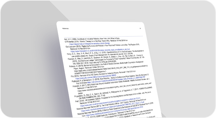References 50 Nof, S.Y. (1999). Handbook of Industrial Robotics. New York: John Wiley & Sons. OTPotential (2018). Robotic Therapy Is on the Rise. Here’s Why. Retrieved 12 Feb 2019 from https://otpotential.com/blog/active-assistive-robotic-therapy Out-Law.com (2016). Replacing Humans with Robots in Your Factories? Hold on Just a Sec. The Register 2016, Retrieved 12 Feb 2019 from https://www.theregister.co.uk/2016/08/30/robots_factories_legal_considerations_out_law/ Parry, G. C., Brax, S. A., Maull, R. S., & Ng, I. C. (2016). Operationalising IoT for Severse supply: The development of use-visibility measures. Supply Chain Management: An International Journal, 21(2), 228-244. Pearson, S., May, D., Leontidis, G., Swainson, M., Brewer, S., Bidaut, L., Frey, J.G., Parr, G. Maull, R., Zisman, A. (2019). Are Distributed Ledger Technologies the Panacea for Food Traceability? Global Food Security. 20: 145- 149. ISSN 2211-9124. https://doi.org/10.1016/j.gfs.2019.02.002. Petkova, H. (2010). Barriers to Innovation in the Field of Medical Devices. World Health Organisation Background Paper, August. Retrieved 15 Mar 2019 from https://apps.who.int/iris/bitstream/handle/10665/70457/WHO_HSS_EHT_DIM_10.6_eng.pdf;jsessionid=BA997413 04345FFFD6163354184ECD47?sequence=1 Pilz (2018). Revision of the ISO Safety Standard for Industrial Robots. Retrieved 1 Feb 2019 from https://www.pilz.com/en-GB/company/news/articles/196225 Platbrood, F. & Görnemann, O. (2018). Safe Robotics – Safety in Collaborative Robot Systems. Sick AG. Retrieved 12 Feb 2019 from https://cdn.sick.com/media/docs/6/96/996/Whitepaper_Safe_Robotics_en_IM0072996.PDF Prakash, A. (2017). Why Robot Law Around Industrial Automation Varies Worldwide. Robotics Business Review. Jan 1. Retrieved 17 Feb 2019 from https://www.roboticsbusinessreview.com/manufacturing/why_robot_law_around_industrial_automation_varies_worl dwide/ Priyandoko, G., Wei, C. K., Sobirin, M., Achmad, H., Widyagama, U., & Yogyakarta, U. T. (2017). HUMAN FOLLOWING ON ROS FRAMEWORK, 2(2), 77–82. PwC (2018). UK Economic Outlook. Prospects for the Housing Market and the Impact of AI on Jobs. July. Pwc.co.uk. Retrieved 19 Feb 2019 from https://www.pwc.co.uk/services/economics-policy/insights/uk-economic-outlook/july-18.html Robotics Business Review (2017). The Chief Robotics Officer - 2017 Update. Retrieved 16 Feb 2019 from https://www.roboticsbusinessreview.com/wpcontent/uploads/2017/06/CRO_2017_Report_vF.pdf Robotics Business Review (2018). 6 Service Robot Questions to Be Answered at CES 2019. Retrieved Feb 14, 2019 from https://www.roboticsbusinessreview.com/consumer/6-service-robot-questions-ces-2019/ Robotiq (2018). ISO/TS 15066 Explained. Robotiq.com. Retrieved 12 Feb 2019 from https://blog.robotiq.com/hubfs/eBooks/ebook-ISOTS15066-Explained.pdf?hsLang=en-ca&t=1541094236194 Rodrigues, J., Cardoso, P., Monteiro, J. & Figueiredo, M. (2016).Handbook of Research on Human-Computer Interfaces, Developments, and Applications, IGI Global, 29 Jun Röhrbein, F., Veiga, G., &Natale, C. (2013). Gearing Up and Accelerating Cross‐fertilization between Academic and Industrial Robotics Research in Europe: Technology Transfer Experiments from the ECHORD Project, Springer, 23 Nov 2013 - Technology & Engineering Rogers, E.M. (2010). Diffusion of Innovations. New York: Simon and Schuster. Savela, N., Turja, T. & Oksanen, A. (2017). Social Acceptance of Robots in Different Occupational Fields: A Systematic Literature Review. Retrieved 12 Feb 2019 from https://www.researchgate.net/publication/321576378_Social_Acceptance_of_Robots_in_Different_Occupational_F ields_A_Systematic_Literature_Review Schmidt, A. (2018). Two years’ Experience with Cobots in a Low Volume Manufacturing Environment. Retrieved 19 Feb 2019 from https://www.rethink-smart-manufacturing.com/wp-content/uploads/2018/03/04_01-Dr.-Axel-Schmidt- Sennheiser.pdf Schneier, M. & Bostelman, R. (2015). NISTIR 8022 Literature Review of Mobile Robots for Manufacturing. National Institute of Standards and Technology, US Department of Commerce. Retrieved 12 Feb 2019 from http://dx.doi.org/10.6028/NIST.IR.8022 Sharkey, A, (2017), Can we program or train robots to be good?. Ethics and Information Technology, 1-13. Smith, N. (2018). Who’s Winning the Robot Race? Control Engineering Europe. Retrieved 12 Feb 2019 from http://www.controlengeurope.com/article/159599/Who-s-winning-the-robot-race-.aspx Song, V. (2018). Ecovacs Deebot R95: A Solid, Versatile Robot Vacuum. PC MAgazine (Digital Edition). Statista. (2018). Worldwide Sales of Industrial Robots from 2004 to 2017 (in 1,000 units). Retrieved from https://www.statista.com/statistics/264084/worldwide-sales-of-industrial-robots/ Statutes of the Republic of Korea (2019). Intelligent Robots Development and Distribution Promotion Act. Retrieved 18 Taking control: robots and risk