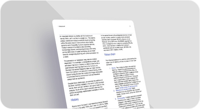 1. Background 12 An important debate is whether all the functions of In the period following the widespread adoption of ‘lean’ ‘sense, think, act’ must be in a single box. This seems across industry, sales of industrial robots remained unduly restrictive in today’s world of cloud computing, relatively static at around 100,000 units per annum. unlike the early days of robots where vision/tactile However, since 2010 when ISIXSIGMA reported that systems were frequently found in separate devices. 70% of companies were using lean principles (Woods, Today’s concept of a robot is also becoming 2010), there has been a substantial increase in increasingly blurred, overlapping strongly with many worldwide sales of industrial robots; 387,000 units similar definitions of digital technology as we head recorded in 2017 (Statista, 2018). towards recognising anything with a microprocessor as a robot. Value chain The perception or ‘robotness’ may also be context- dependant. For example, a comparatively simple ‘pick The following framework is useful for understanding the and place’ device in a factory is called a robot whilst a value chain of robotics, which comprises of three main sophisticated washing machine in the home is not. elements: Devices that society frequently label as ‘robot’ tend to 1. Brains. The intelligence that is the machine have their sensors and actuators outward-facing, while learning, natural language processing and inward-facing devices like ovens and fridges manipulate artificial intelligence aspects of the robot. As a controlled internal environment and are therefore categorised as appliances. ‘intelligence’ providers build a platform of data they will be able to increase a robot’s Despite these challenges, we consider the addition of understanding of its environment. This gives the term ‘machine situated in the world’ to the standard rise to opportunities to build a platform that hosts data from multiple robots, learns from ‘sense, think and act’ definition as a good basis for this analysis. Much of this report considers devices that many examples and provides ‘intelligence’ as a service. This is discussed further in Lloyd’s exhibit increasingly sophisticated examples of ‘sense, report Taking control: AI and insurance. think and act’. 2. Manufacture and assembly. Robot History manufacturers are classified into industrial robots, medical robots, consumer robots and d drones . Robots were first used in car manufacturing by General 3. Components. Includes specialist component Motors in the early 1960s, but it was not until the 1980s manufacturers, many of whom have been when widespread application and research saw them engaged in the robotics industry for long being employed for processes such as welding, paint periods providing basic mechanisms such as spraying, assemblies and inspection. By then, robots motors gears and actuators. There are also were also used in electronics through pick and place specialist software providers who enable users machines for printed circuit boards, as the application of to tailor their robots to specific environments. robots became an essential part of Computer Integrated Finally, there is the long supply chain of basic Manufacturing (CIM) and the factory of the future. component parts such as semiconductors. However, the business case for robotics implementation On the supply side, the advent and adoption of digital was often problematic, as humans were cheaper and technology has been a major enabler in the growth of more agile. In car manufacturing for instance, cobots. This includes the prevalence of computer chips productivity from the application of the Toyota supporting machine learning and deep learning, 3D Production System (TPS) was found to be much higher cameras and drones, which along with other sensors enable the capture of large volumes of data. All of this than from automation, and the mantra became ‘lean is supported by the scalability of cloud-based computing first then automate’. Closely associated with the resources. Taken together, they contribute to a huge techniques of lean production, TPS includes a range of upsurge in possibilities that are now being recognised process improvement techniques aimed at reducing by technology developers as well as entrepreneurs and waste and focusing on the social and procedural venture capitalists (VCs). aspects of the process flow rather than the technologyc. c TPS was widely researched by a team at Massachusetts Institute of TPS techniques led to lower defects, higher productivity and higher Technology (MIT) which found that engaging employees through levels of worker engagement (Adler, 1993). process improvement led to much higher productivity than technology d adoption: an echo of previous extensive socio-technical systems This report does not cover drones, which are discussed in Lloyd’s research. MIT’s research resulted in the book The Machine That report Drones take flight: Key issues for insurance Changed The World (1990) which provided substantial evidence that Taking control: robots and risk
