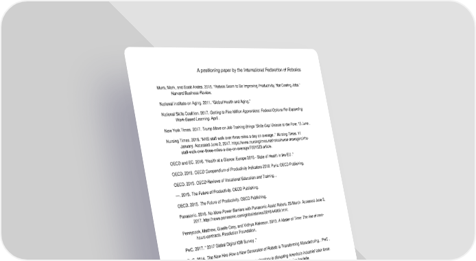 A positioning paper by the International Federation of Robotics Muro, Mark, and Scott Andes. 2015. “Robots Seem to Be Improving Productivity, Not Costing Jobs.” Harvard Business Review. National Institute on Aging. 2011. “Global Health and Aging.” National Skills Coalition. 2017. Getting to Five Million Apprentices: Federal Options For Expanding Work-Based Learning. April . New York Times. 2017. Trump Move on Job Training Brings ‘Skills Gap’ Debate to the Fore. 15 June . Nursing Times. 2016. “NHS staff walk over three miles a day on average .” Nursing Times. 11 January. Accessed June 2, 2017. https://www.nursingtimes.net/roles/nurse-managers/nhs- staff-walk-over-three-miles-a-day-on-average/7001523.article. OECD and EC. 2016. “Health at a Glance: Europe 2016 - State of Health in the EU .” OECD. 2016. OECD Compendium of Productivity Indicators 2016. Paris: OECD Publishing. OECD. 2015. OECD Reviews of Vocational Education and Training. . —. 2015. The Future of Productivity. OECD Publishing. OECD. 2015. The Future of Productivity. OECD Publishing. Panasonic. 2016. No More Power Barriers with Panasonic Assist Robots. 23 March. Accessed June 2, 2017. http://news.panasonic.com/global/stories/2016/44969.html. Pennycook, Matthew, Giselle Cory, and Vidhya Alakeson. 2013. A Matter of Time: The rise of zero- hours contracts. Resolution Foundation. PwC. 2017. “ 2017 Global Digital IQ® Survey .” PwC. 2014. The New Hire How a New Generation of Robots is Transforming Manufacturing, . PwC . PwC. 2016. Upskilling manufacturing: How technology is disrupting America's industrial labor force. Price Waterhouse Coopers in conjunction with the Manufacturing Institute. Quartz. 2017. The optimist’s guide to the robot apocalypse. 9 March. Research and Markets. 2017. “Collaborative Robots Market: Global Industry Analysis, Trends, Market Size and Forecasts up to 2023.” Research and Markets. 2017. “Global Cloud Robotics Market Analysis & Trends - Industry Forecast to 2025 .” Reshoring Initiative. 2015. “Reshoring Initiative Data Report 2015.” reshorenow.org. Accessed February 02, 2017. http://reshorenow.org/content/pdf/2015_Data_Summary.pdf. Reuters. 2016. Collaborative robots open new fronts in automation. 24 June. Reuters. 2017. Facebook tries to fix violent video problem with 3,000 new workers. 3 May. Robotic Industry Association. 2015. Robots and Healthcare Saving Lives Together. 29 November. Rosenfeld, Jake, Patrick Denise, and Jennifer Laird. 2016. Union decline lowers wages of nonunion workers. Economic Policy Institute. Russell Reynolds. 2017. The Rise of the Chief Digital Officer. Accessed July 10, 2017. http://www.russellreynolds.com/insights/thought-leadership/the-rise-of-the-chief-digital-officer. 33 Positioning Paper March 2018