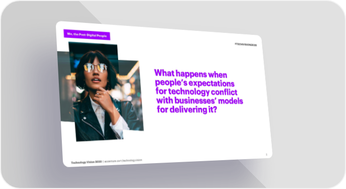 We, the Post-Digital People #TECHVISION2020 What happens when people’s expectations for technology conflict with businesses’ models fordelivering it? Technology Vision 2020 | accenture.com/technologyvision 2