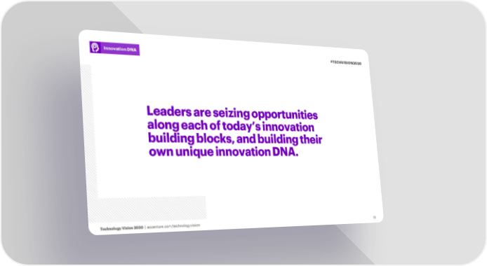Innovation DNA #TECHVISION2020 Leaders are seizing opportunities along each of today’s innovation building blocks, and building their own unique innovation DNA. Technology Vision 2020 | accenture.com/technologyvision 10